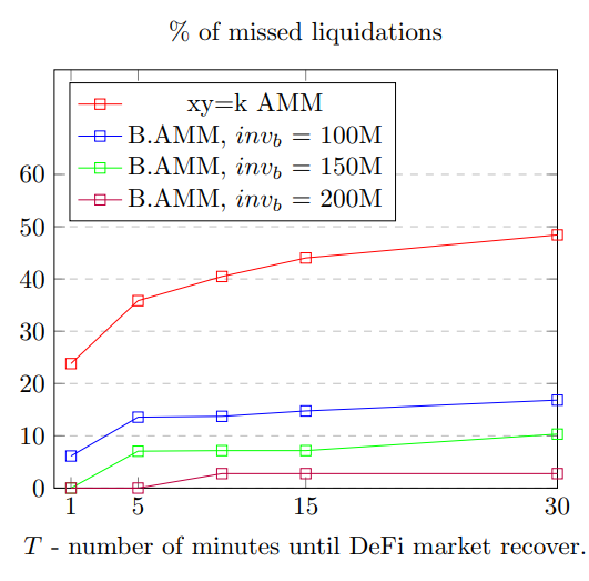 The whitepaper describes a set of experiments and a way to model how the B.AMM could handle liquidations of $1B monthly.